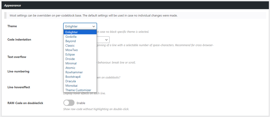 プラグインの「Setting」から「Appearance」の画面へ進むと、表示テーマを自由に選択できます。