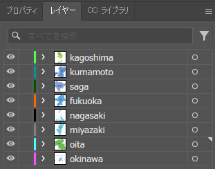 そのため、県ごとにレイヤーグループを作成して、パーツを整理しておきます。