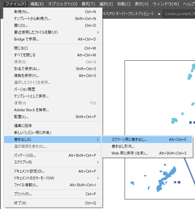 「ファイル」→「書き出し」→「スクリーン用に書き出し…」を選択します。