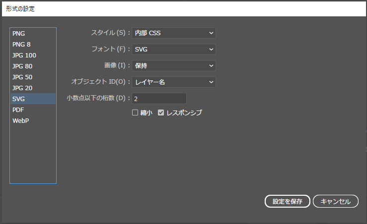 ⚙歯車のマークをクリックし、形式の設定を確認してください。