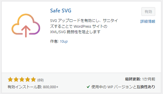 このプラグインをインストールすると、SVGファイルをメディアに問題なくアップロードできます。
